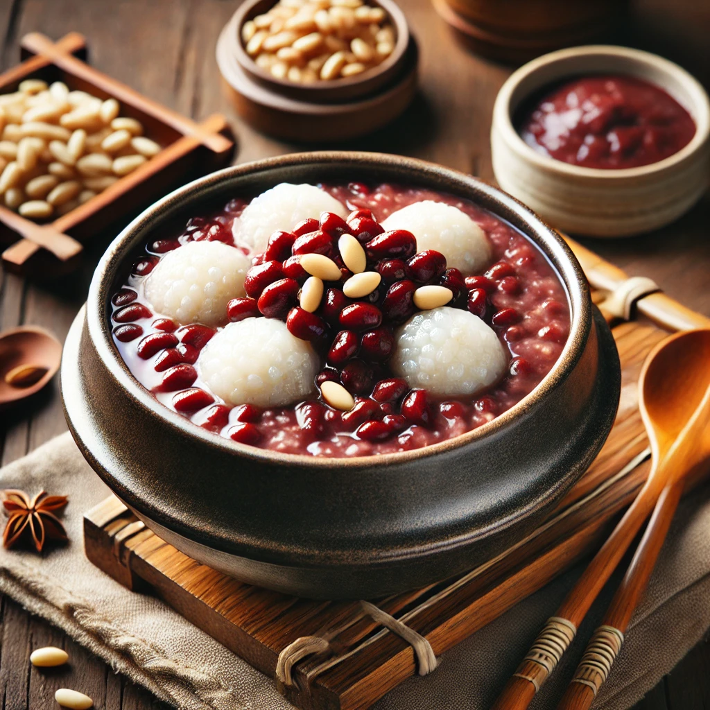 - 단팥죽: 팥 앙금에 꿀을 더해 달콤한 디저트 스타일 팥죽.