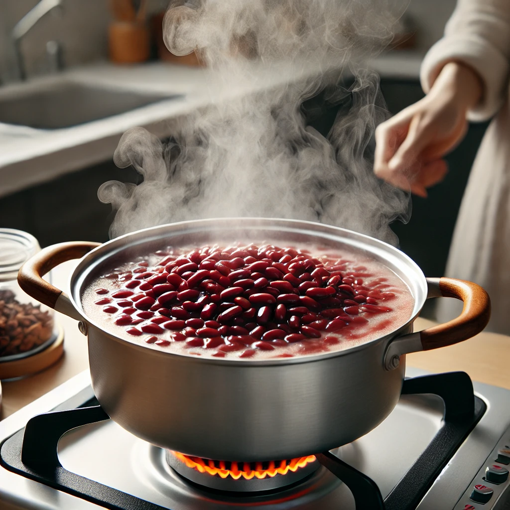 새로운 물을 넉넉히 넣고 중불에서 팥이 으깨질 때까지 삶아줍니다. 압력솥을 사용하면 시간을 절약할 수 있습니다.