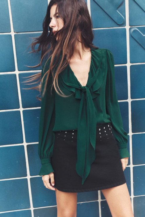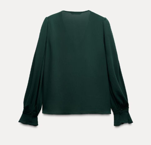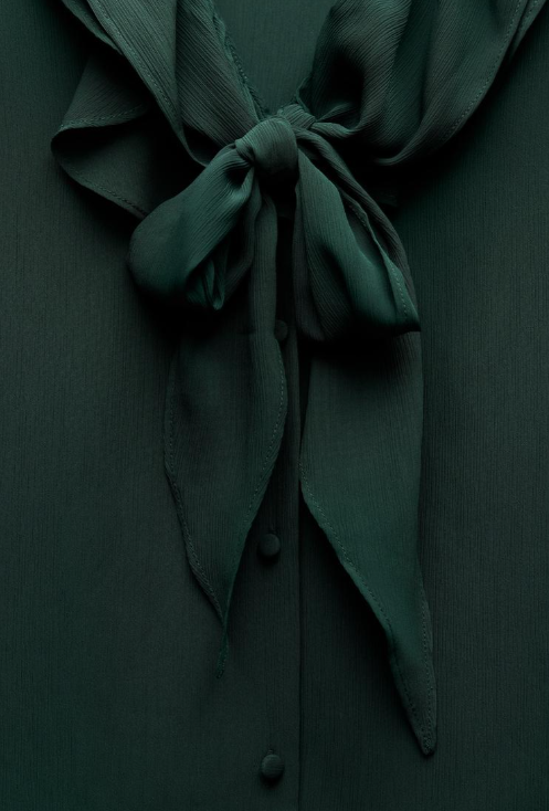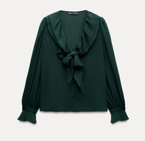 - 추천 이유: 딥 그린 컬러와 리본 디테일이 돋보이는 우아하고 여성스러운 디자인으로, 포멀 한 자리와 캐주얼한 스타일링 모두에 활용하기 좋은 아이템입니다. 자연스럽게 흐르는 실루엣과 프릴 디테일은 부드러운 분위기를 연출하며, 고급스러운 컬러감이 계절감을 살려줍니다.