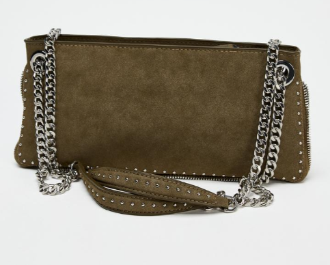 - 추천 이유: 세련된 카키 컬러와 메탈 체인 디테일로 트렌디하면서도 고급스러운 분위기를 연출할 수 있는 아이템입니다. 스웨이드 느낌의 텍스처는 부드럽고 따뜻한 무드를 더하며, 체인과 스터드 장식이 모던하면서도 시크한 매력을 강조합니다. 적당한 크기와 구조적인 디자인 덕분에 데일리룩은 물론, 약간의 포인트가 필요한 자리에서도 활용도가 높습니다.