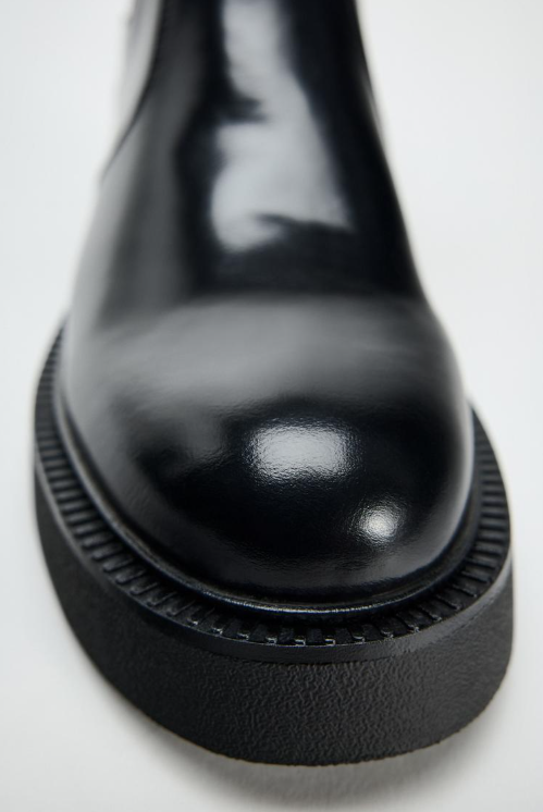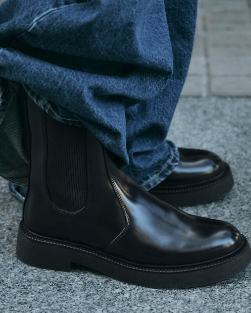 - 추천 이유: 매끈한 블랙 광택 가죽과 두꺼운 아웃솔로 모던하면서도 트렌디한 매력을 가진 아이템입니다. 군더더기 없는 깔끔한 디자인과 편안한 착용감이 특징으로, 데일리룩부터 포멀 한 룩까지 다양하게 활용하기 좋습니다. 특히 엘라스틱 밴드 디테일이 실용적이면서도 시크한 분위기를 더해줍니다.