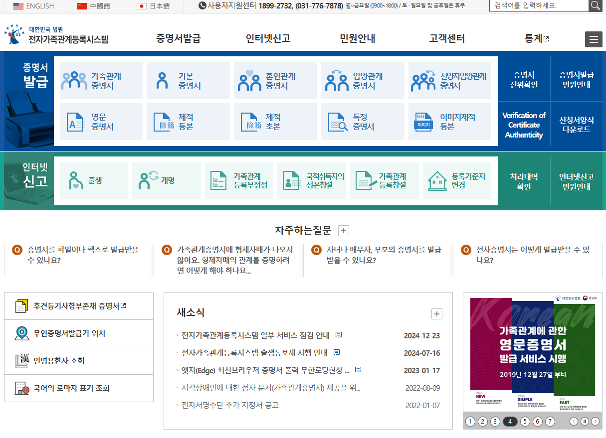 가족관계증명서 발급 방법