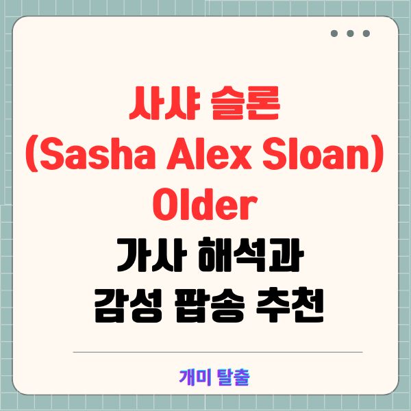 어릴 때는 부모님이 완벽한 존재처럼 느껴지지만, 나이가 들수록 그들도 인간적이고 불완전한 존재임을 깨닫게 됩니다. 사샤 슬론(Sasha Alex Sloan)의 곡 ‘Older’는 이러한 성장과 깨달음의 과정을 진솔하게 담아낸 곡입니다. 이 글에서는 이 곡의 가사 해석, 배경, 그리고 관련 팝송 추천까지 모두 담아봤습니다. 노래가 가진 감동을 깊이 느껴보세요.