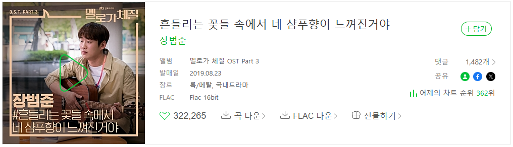 4) 장범준 - 흔들리는 꽃들 속에서 네 샴푸향이 느껴진거야 (여자 키 버전)
