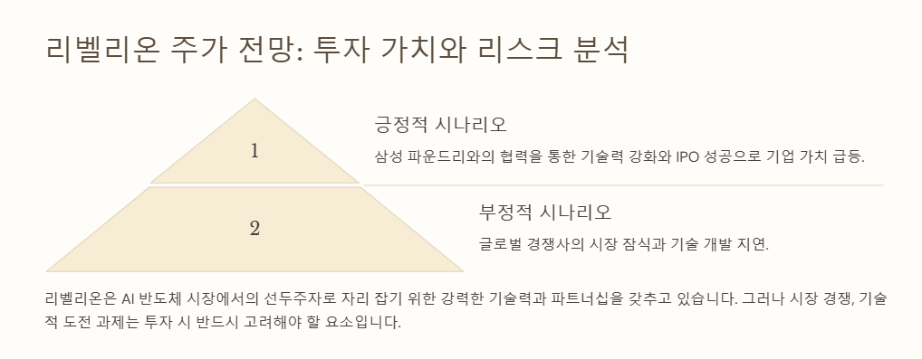- 긍정적 시나리오: 삼성 파운드리와의 협력을 통한 기술력 강화와 IPO 성공으로 기업 가치 급등.