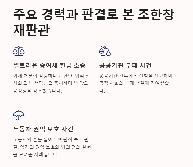 - 의의: 조한창 재판관은 판결에서 법적 절차와 과세 형평성을 중시하며, 법 앞의 공정성을 강조했습니다.