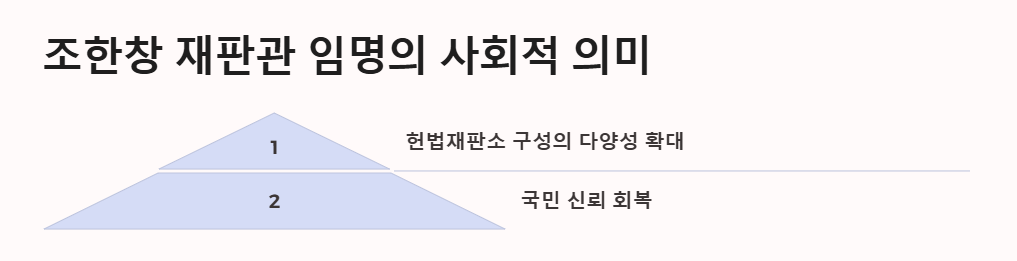 조한창 재판관은 헌법재판소의 구성 다양성을 강화하며, 국민의 목소리를 대변할 수 있는 대표적인 인물로 평가받고 있습니다.