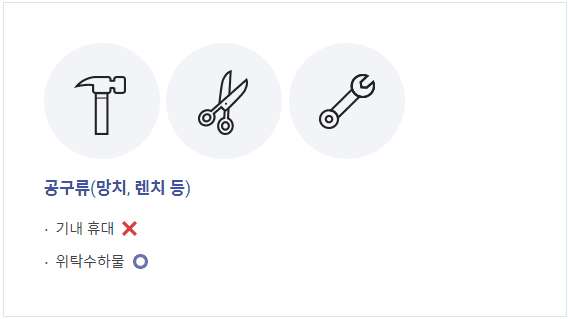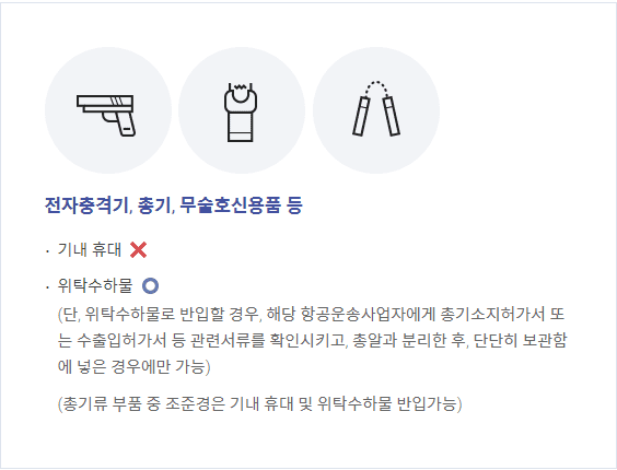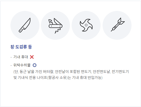 - 자세한 내용은? 항공사 홈페이지에서 기내 반입 금지 물품 목록을 확인하세요!