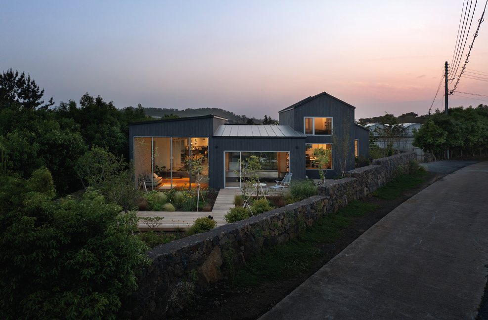 - 곶자왈과 건축의 조화: 곶자왈의 나무와 덩굴이 집을 감싸며, 집 자체가 숲의 일부처럼 느껴지도록 디자인되었습니다.