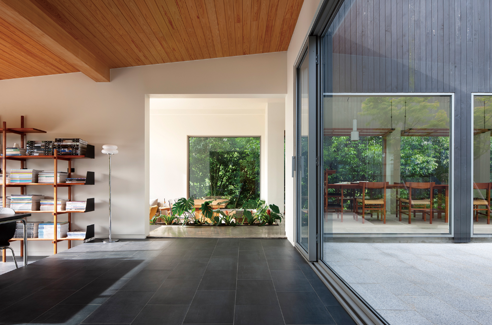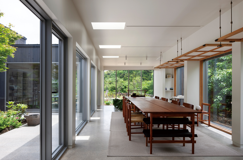 - 실내와 실외의 경계를 허문 디자인: 큰 창문과 오픈된 구조로 곶자왈의 나무와 하늘이 집 안으로 들어옵니다.