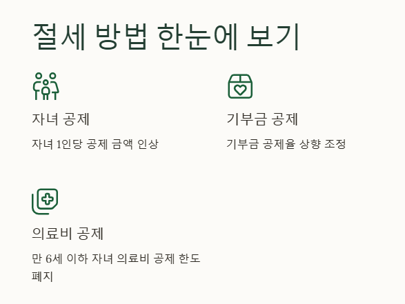 자녀 공제, 기부금 공제, 의료비 공제 등 주요 세액공제 항목 비교