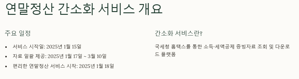 - 편리한 연말정산 서비스 시작: 2025년 1월 18일