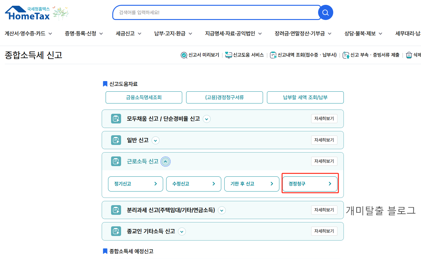 ❗단, 연말정산 후 종합소득세 신고까지 한 경우는 근로소득 신고 경정청구가 아닌 종합소득세 경정청구로 신청해야 하니 주의하세요.