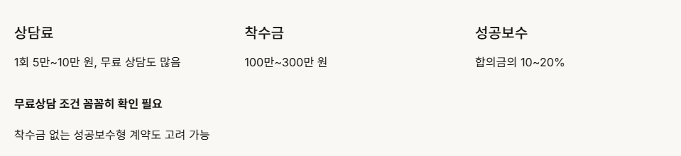 ✅ 최근에는 착수금 없는 성공보수형 계약도 등장하고 있습니다. 초기 비용 부담이 크다면 이 옵션도 고려해볼 만합니다.