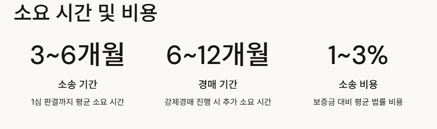 📌 경매까지 약 6개월~1년 소요되며, 경매 비용은 선지급 후 회수 가능