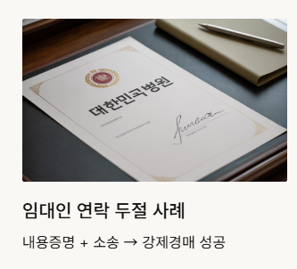 사례 ①: 임대인 연락 두절 → 내용증명 + 보증금 반환 소송 → 강제경매 성공