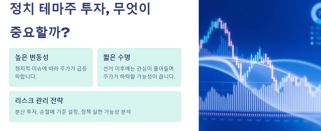 2024년 정치 테마주 시장에서 성공적인 투자를 위해 철저한 분석과 전략이 필수입니다. 변동성이 큰 시장에서도 냉철한 판단으로 기회를 잡으시길 바랍니다.