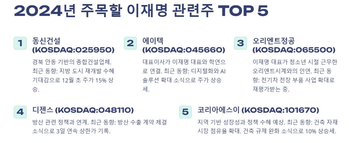 4. 최신 정보로 본 이재명 관련주 동향 (2024년 12월 기준)
