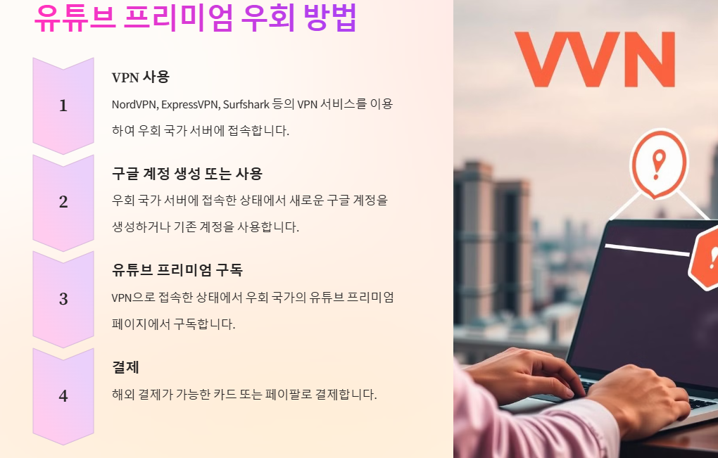 하지만 한국에서의 유튜브 프리미엄 가격은 상대적으로 비싸기 때문에, 많은 사용자가 우회 구독을 통해 저렴한 국가에서 구독하는 방법을 찾고 있습니다.