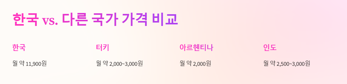- 가족 구성원과 요금을 분담하면 1인당 약 4,580원으로 저렴하게 이용 가능.